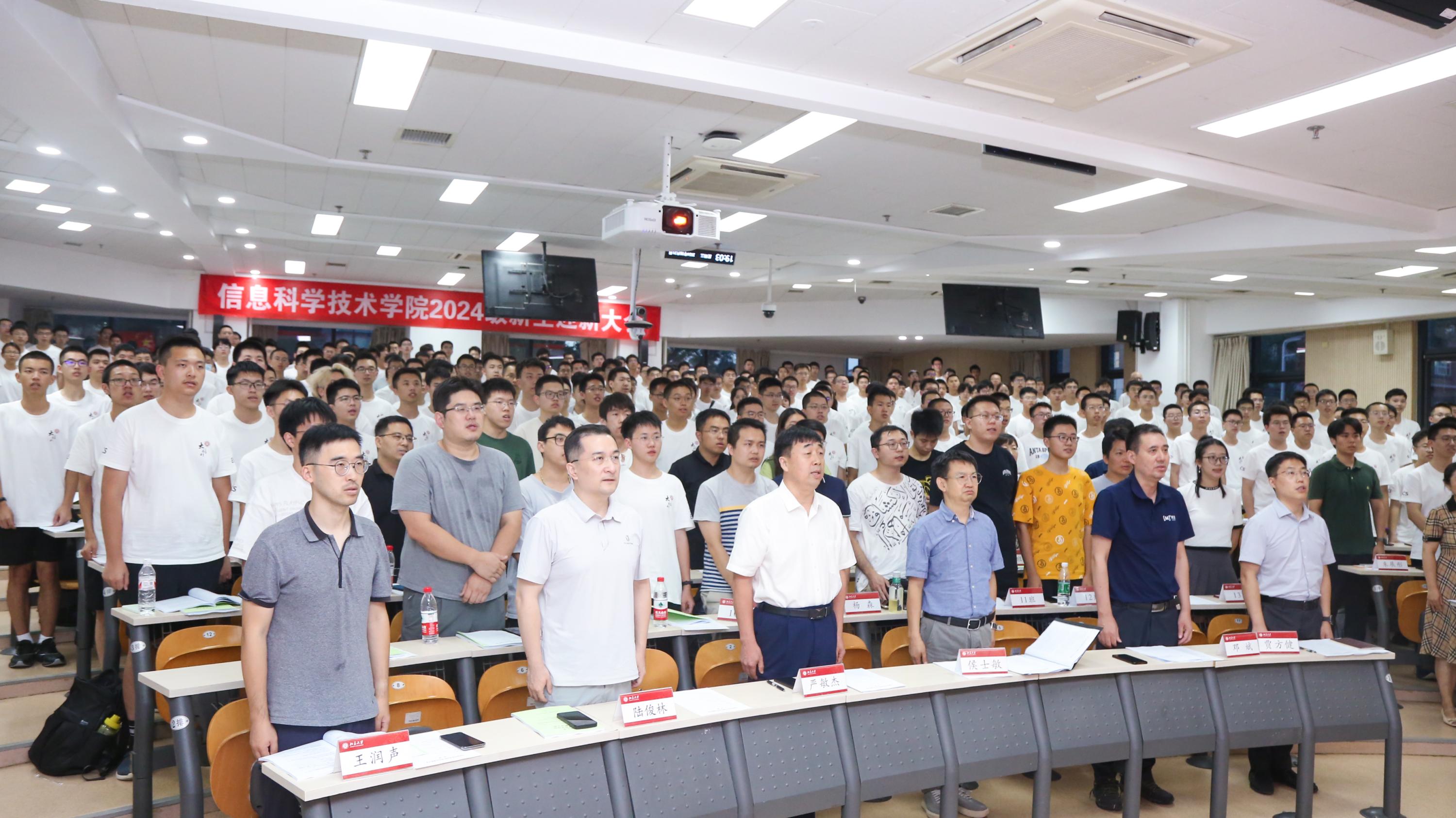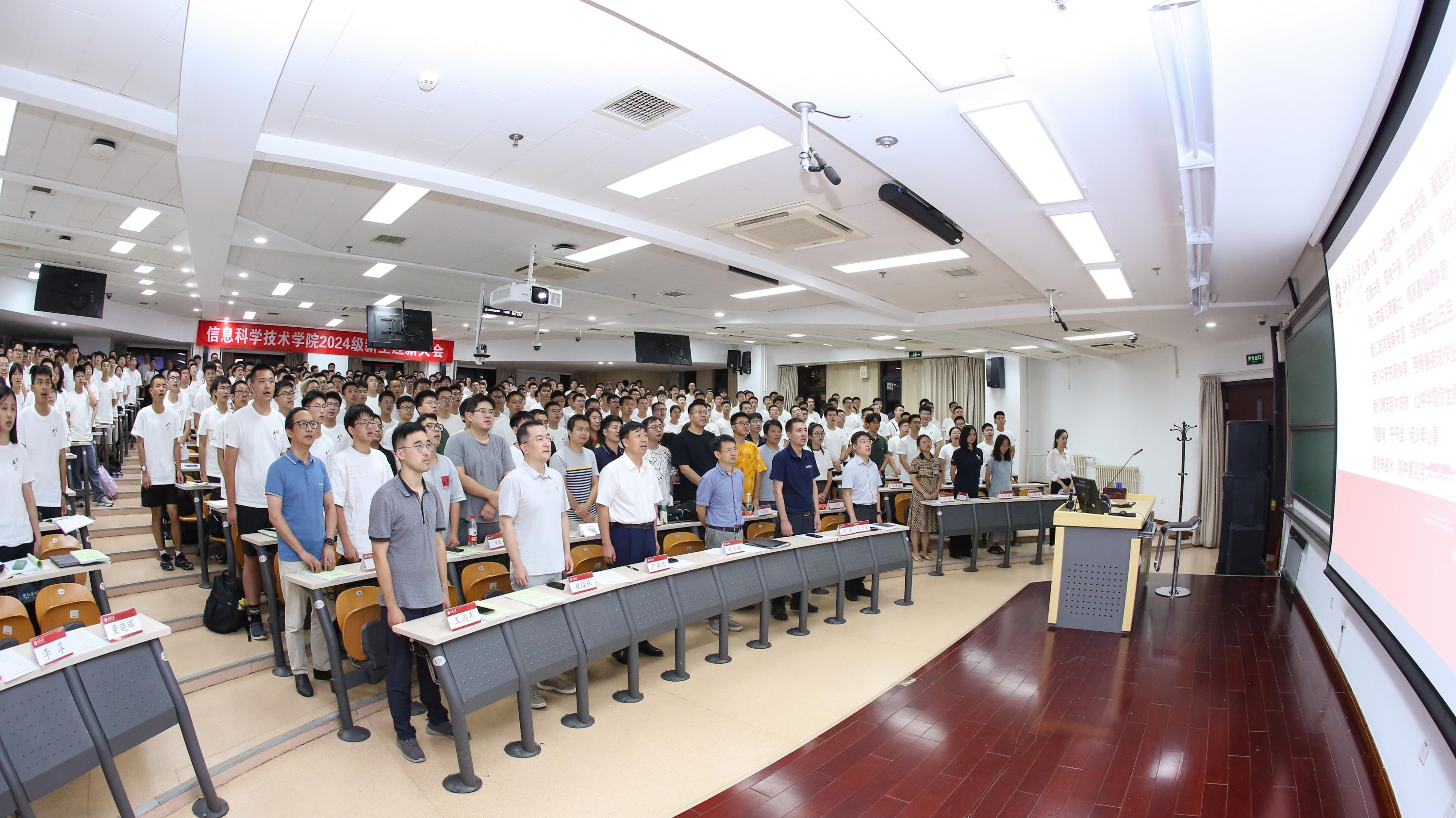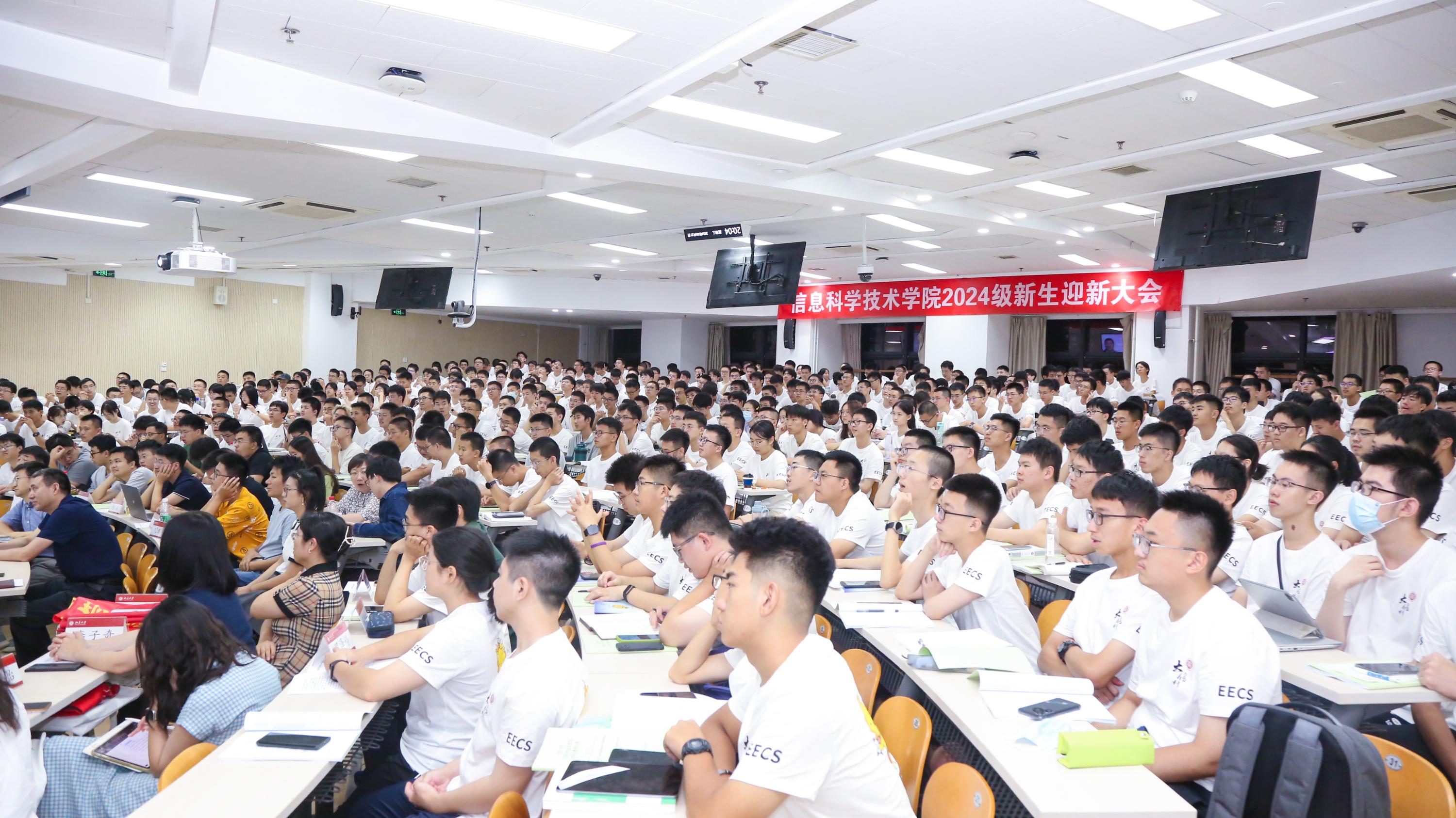 8月21日晚,北京大学信息科学技术学院2024级新生迎新大会在理科教学楼108教室举行。学院党委书记严敏杰,院长侯士敏,副院长陆俊林、王润声、邓斌,党委副书记贾方健,2024级10班第二班主任、校团委研究生与青年工作部部长杨森,以及学院教务、学工相关部门老师,2024级各班班主任和带班辅导员,老生代表以及2024级全体新生参加大会。会议由学院2024级年级辅导员付晓倩主持。
