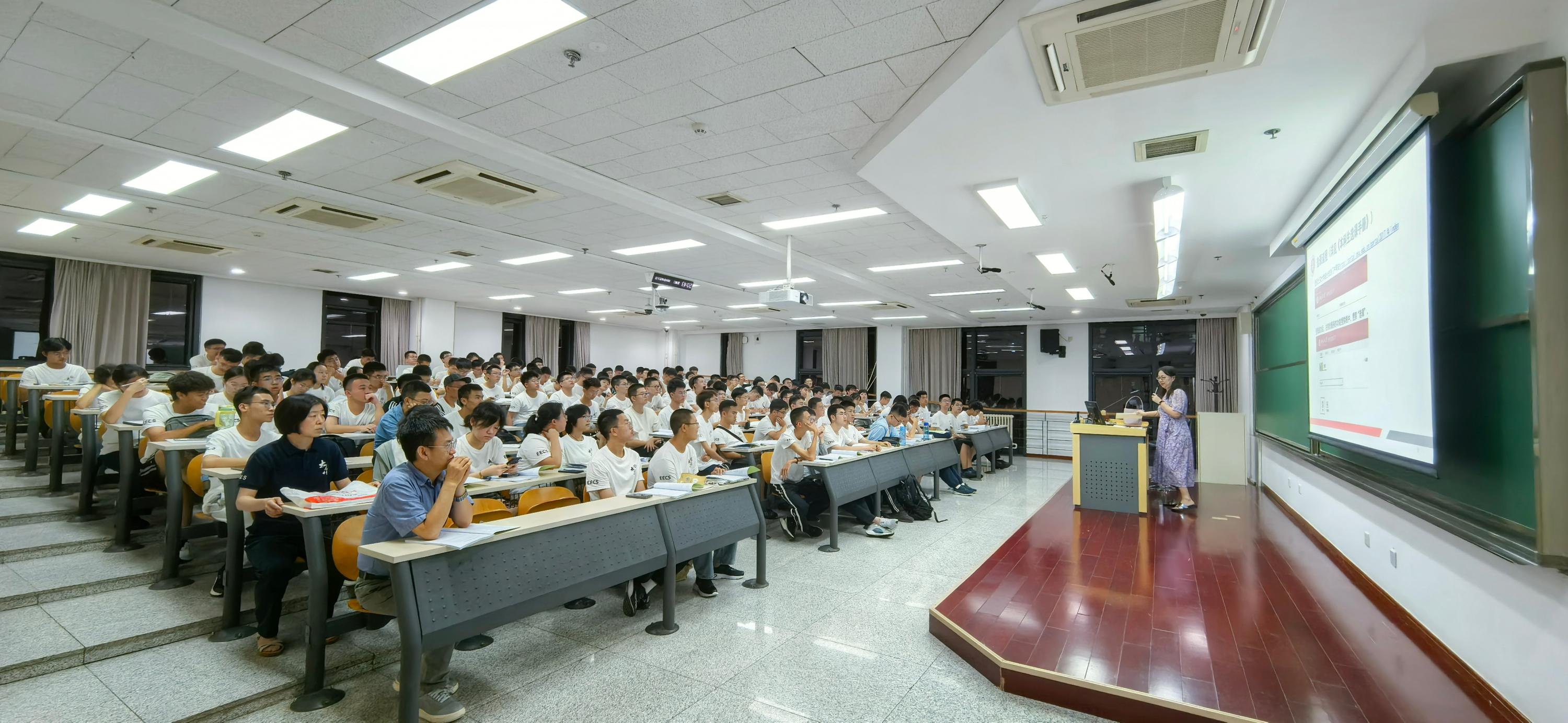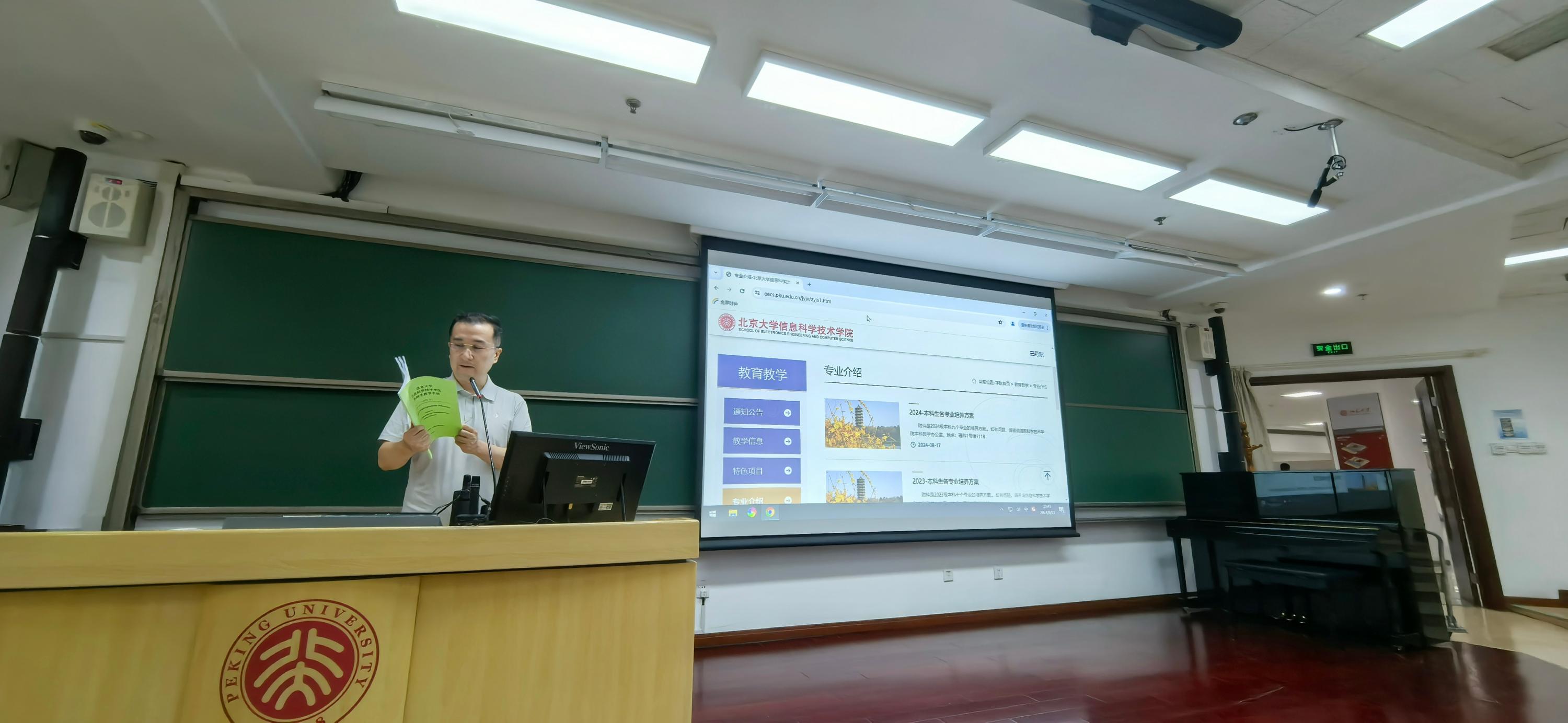 邓斌向大家介绍了学院的全方位概况。他从学院基本情况、专业建设、学生管理和行政服务等角度全面详尽地带同学们认识信科。邓斌特别强调了北大信息学科所承载的悠久历史与辉煌成就,展现了其庞大的学科体系与宏伟的发展目标,让同学们对信科有了更加全面而深刻的认识。