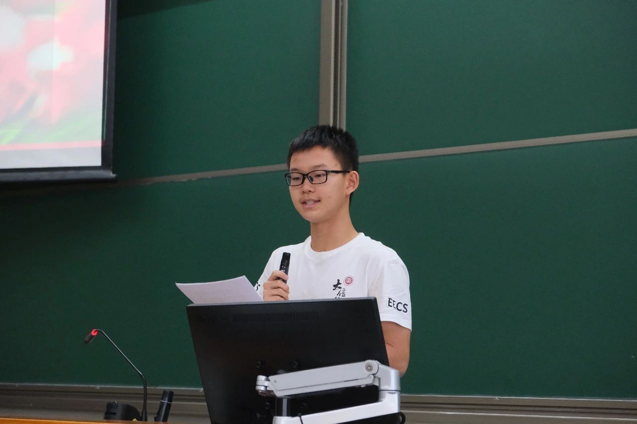 信息科学技术学院2022级宋海博同学作为在校生代表发言。首先,他向初入燕园、即将踏上军训征程的新同学们,致以了欢迎和祝福。他分享了自己参加军训的宝贵经历,军训使他学会了在困难面前不屈不挠,在挑战中勇于担当。最后,他号召2024级同学们借助军训的宝贵契机,积极向党组织靠拢。