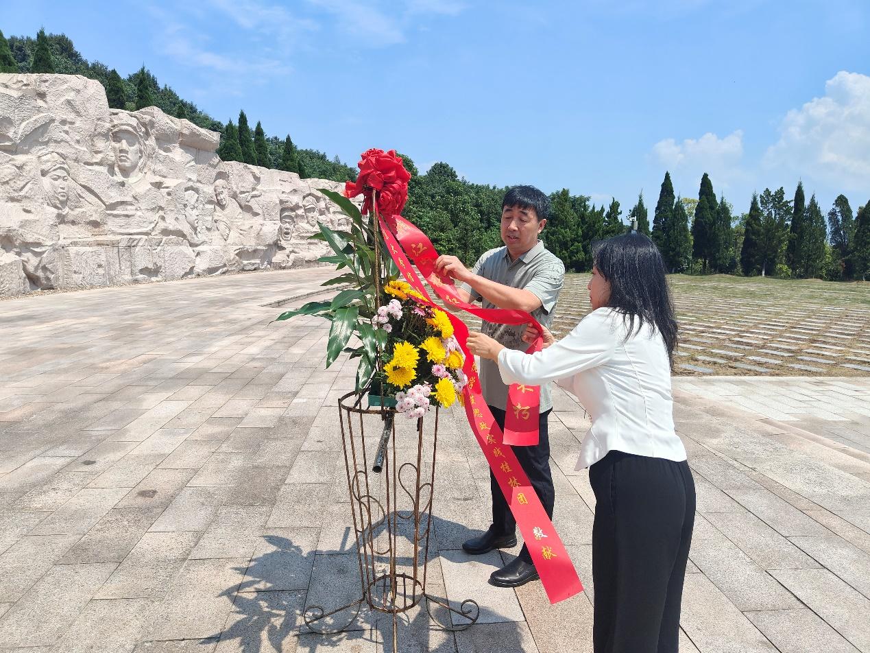 随后,实践团全体师生前往纪念林凭吊广场,缅怀红军烈士并敬献花篮。在“红军魂”雕塑长廊前,全体师生肃立,手捧菊花,向在湘江战役中英勇献身的烈士们默哀。默哀毕,全体师生向红军烈士三鞠躬。方阵前,两名学生代表抬起花篮,缓步走向红军烈士群体雕塑,将花篮摆放在雕塑前。学院党委书记严敏杰老师和党政办公室主任杨琦缓步向前,仔细整理花篮缎带。整理完毕,全体师生依次将手中的鲜花敬献在雕塑前,对红军烈士致以深切哀思与崇高敬意。