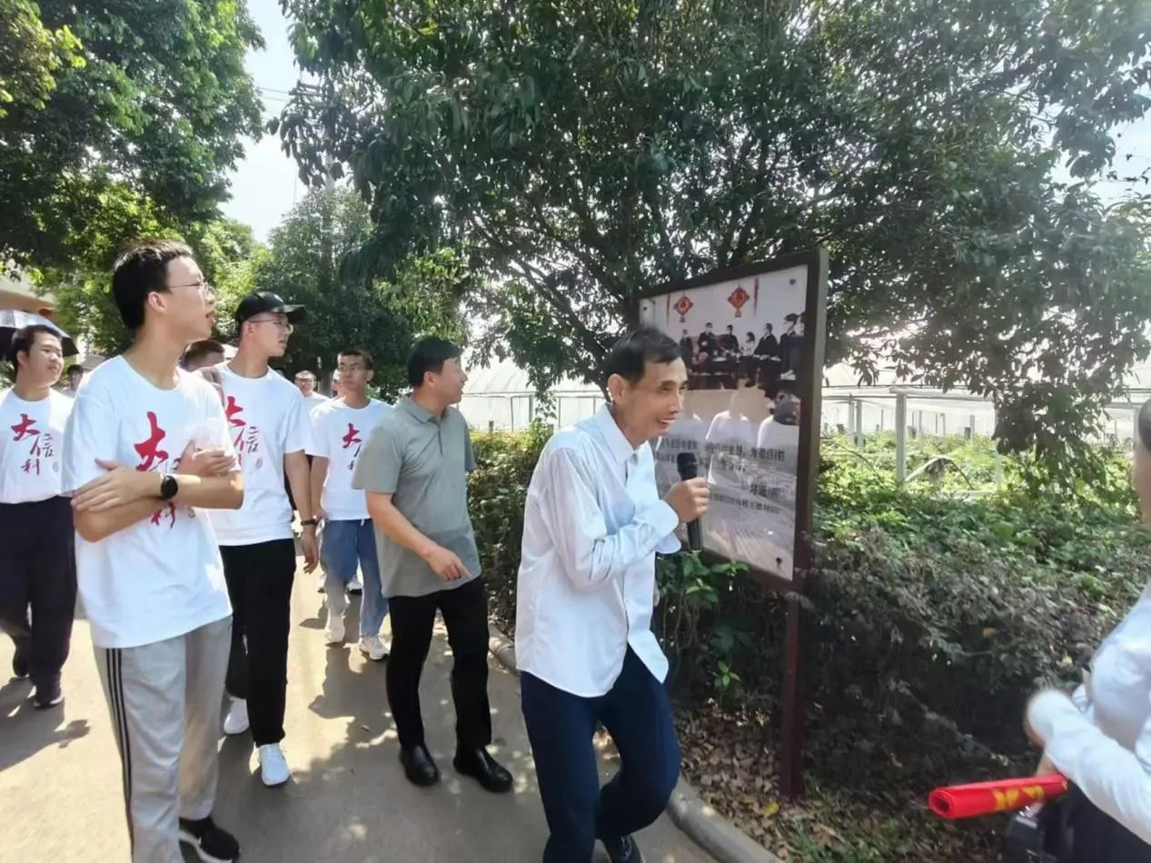 下午,实践团继续追随总书记的脚步,来到湘江战役主战场脚山铺附近,参观以葡萄种植产业闻名的毛竹山村。毛竹山村党支部副书记、葡萄种植协会会长王海荣热情地迎接了实践团师生们,他介绍道,2021年4月总书记考察毛竹山村时,正是他作为村子里的接待员为总书记全程讲解。当日,总书记向他详细询问了村子里葡萄产量、品质、价格等的情况,并鼓励村民们立足特色资源,因地制宜发展乡村旅游等特色产业,“幸福是奋斗出来的”。