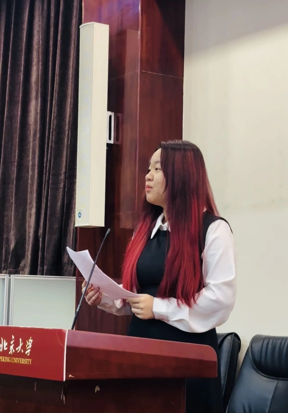 接下来,新老学员代表相继发言。往届团校优秀学员代表、历史学系23级本科生张圣婕首先发言。她从团校的性质入手,指出团校在青年工作与学生骨干培养上的重要意义。她以“公文写作培训”为例,表示团校课程的设置非常贴合大学生活,有很强的指导作用。她希望新学员积极参与联合团校活动,充分利用团校的资源,努力提高自己的综合素质和能力,祝愿新学员珍惜机会,努力学习,勇敢实践。