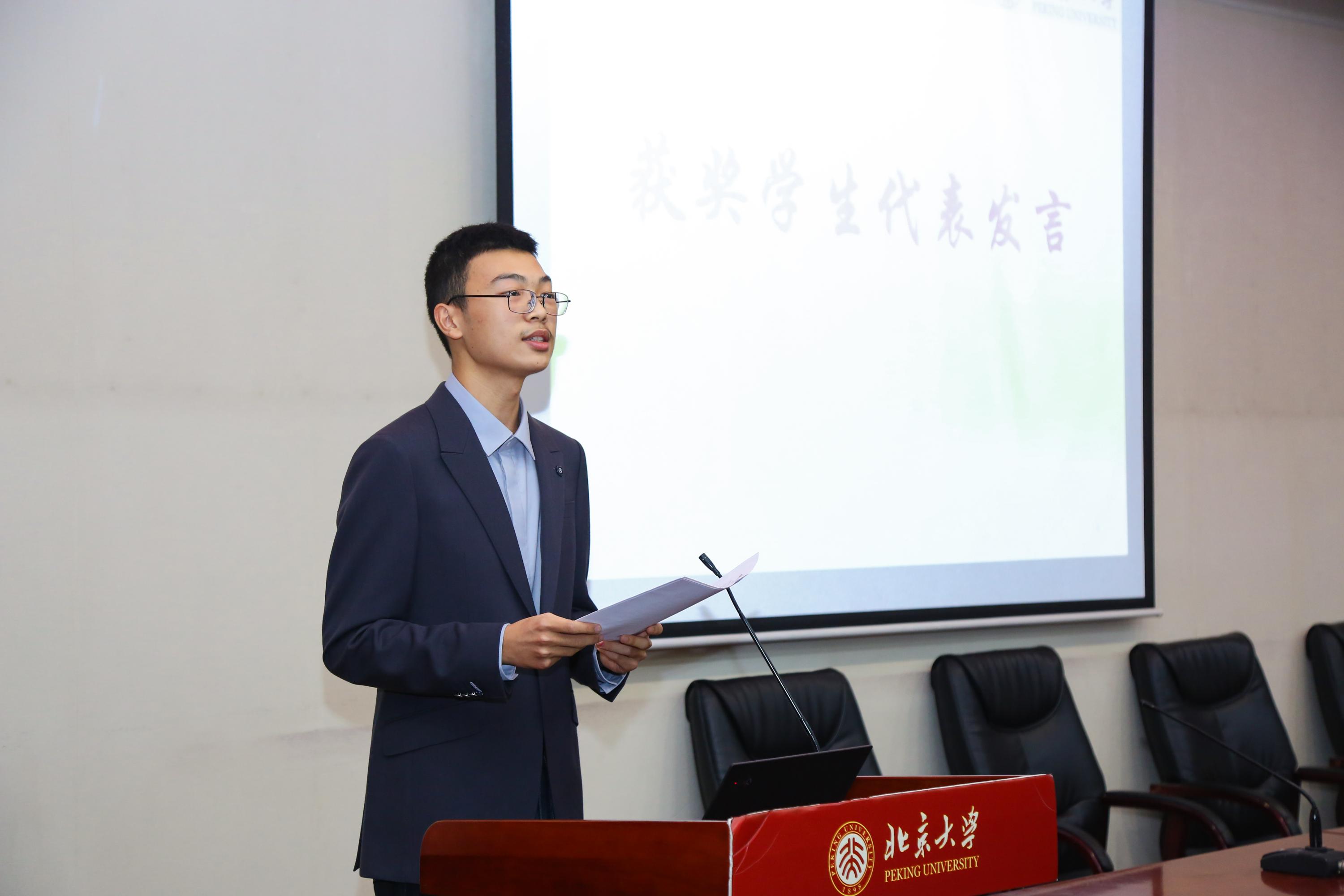 随后,主持人宣读了获奖名单。每一个名字的响起,都伴随着现场热烈的掌声,这掌声既是对获奖同学的祝贺,也是对他们努力的认可。获奖学生代表郭羽冲和丛文浩同学分别上台发表了感言,分享了自己的学习经历和获奖感受。他们表示,将倍加珍惜这份荣誉,不断努力学习,不辜负学院的期望。