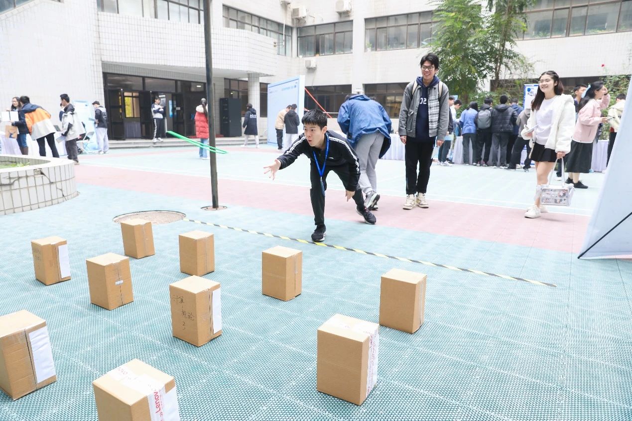 合作企业九坤和荣耀带来的趣味答题挑战赛让不少同学驻足,同学们在此让智慧与想象自由翱翔,在解题的挣扎与完成的欢愉中尽情感受信息与数字的魅力。
