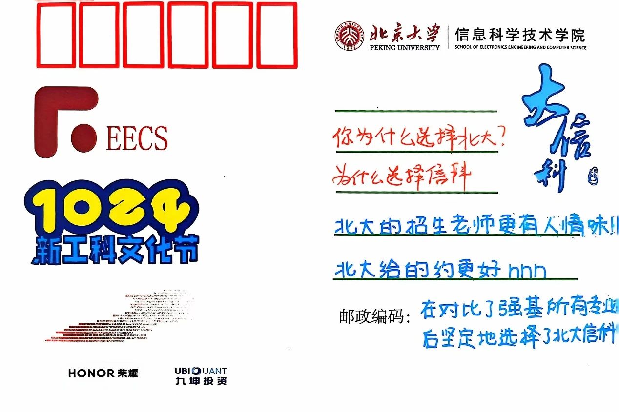1024是一个日期,更是独属于信息科学的文化符号。参与本次文化日活动的,既有来自信科各个年级的同学,也不乏来自其他院系的同学们,可见1024早已得到广泛的喜爱与认可。作为北大信科青年,我们当让1024的文化符号继续发扬光大,让更多人了解、参与到其中,并使之永恒地传承下去。与此同时,我们也将发扬科学精神,拓宽学科视野,立志成为国家信息科学事业发展的主力军。
