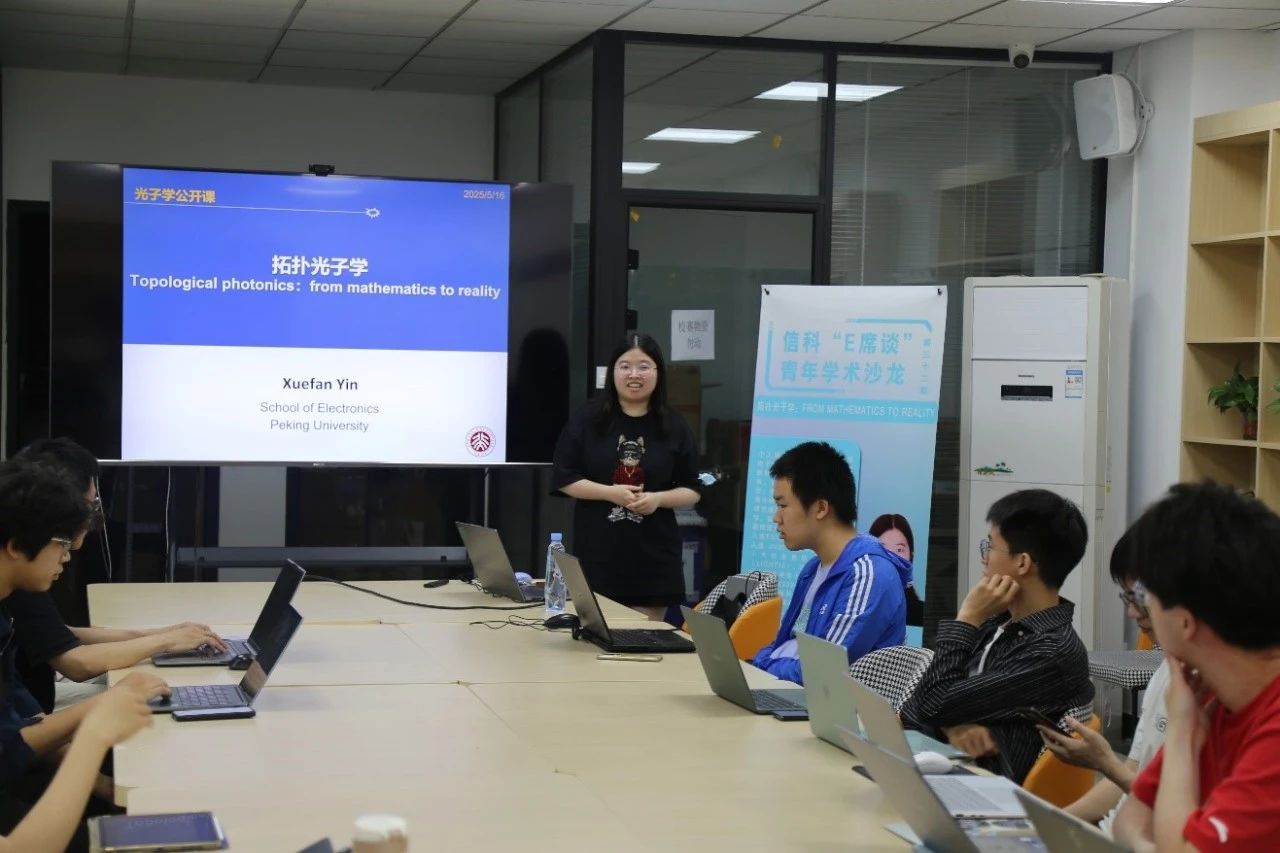 2025516日晚,信科“E席谈”青年学术沙龙第三十二期活动在理科一号楼1127学生活动室顺利举办。北京大学电子学院信息与通信研究所助理教授尹雪帆老师受邀进行了以“拓扑光子学:FROM MATHEMATICS TO REALITY”为题的分享。本次沙龙由信息科学技术学院青年志愿者协会翟睿辰同学主持,院团委书记吕媛老师参加了本次活动。