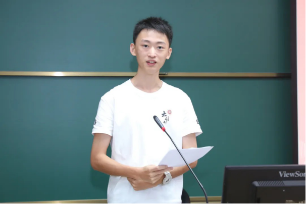 2022级在校生代表宋海博分享了自己在信科三年学习生活中的感悟与经验,并为新生们提出宝贵建议。他鼓励同学们以开放心态拥抱变化,避免陷入无意义的比较或焦虑;勇于跳出舒适圈,积极参与科研、实习和社团活动,在实践中探索方向;同时学会取舍,专注真正