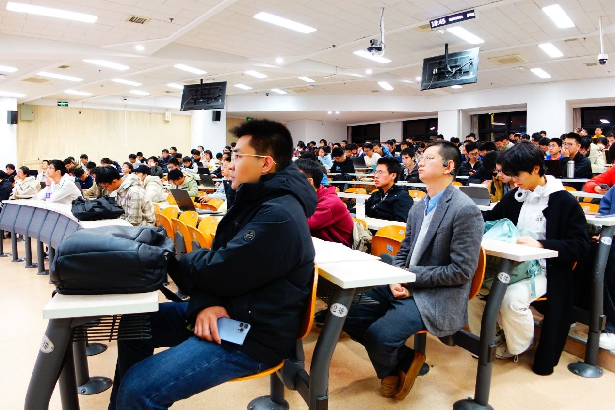 在问答环节中,同学们踊跃提问。有同学询问模型训练三个环节的时间分布,刘伟杰回答,由于预训练可能存在失败返工的情况,其时间占比约为90%;强化学习范式相对固定且可控,约占8%。另有同学问及如何利用训练过程中的时间间隙,他表示,应在间隙中落实每一步操作,密切监控数据,及时排查并修正可能存在的问题。