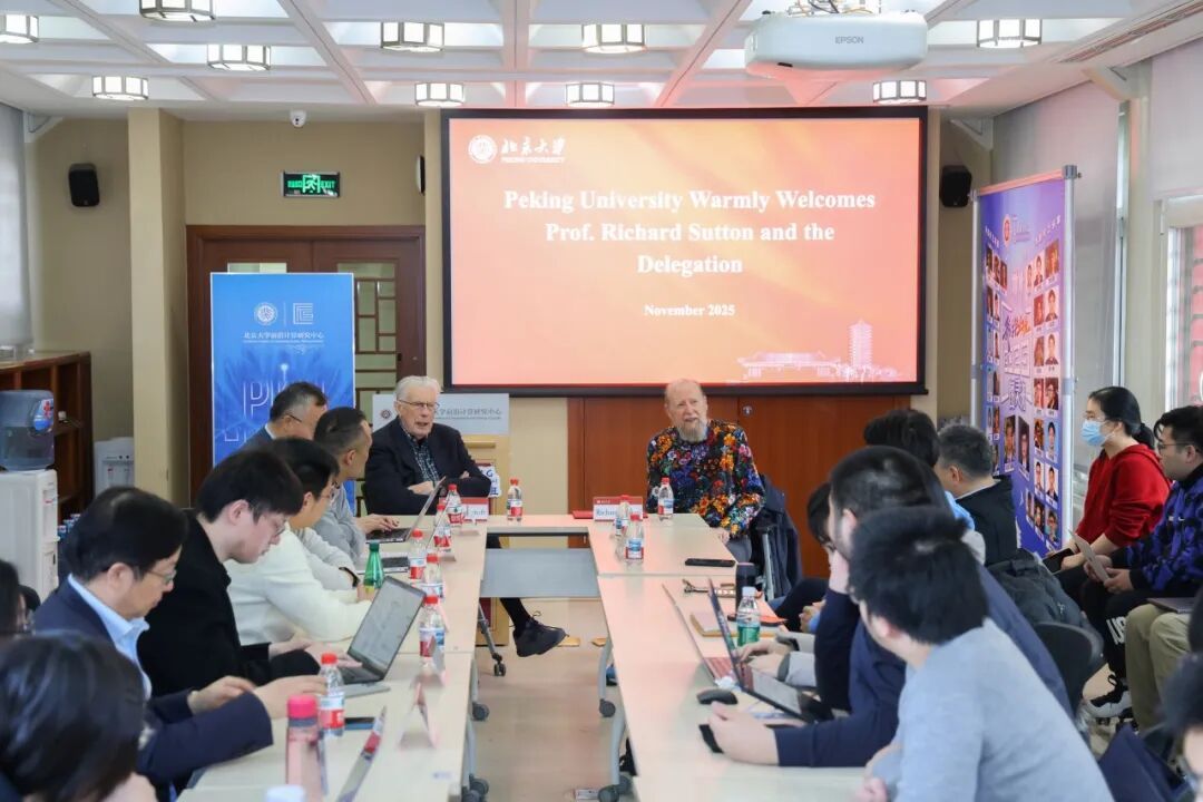 2025年11月26日,2024年度图灵奖得主、国际著名强化学习专家、阿尔伯塔大学 Richard Sutton 教授受邀到访北京大学,与北大图灵班师生就“人工智能的未来:经验纪元与设计时代”(The Future of AI: The Era of Experience and the Age of Design)主题展开座谈。活动吸引了各界专家、学者及学生踊跃参与,现场讨论气氛热烈。活动由图灵班科研导师、计算机学院长聘副教授卢宗青主持。