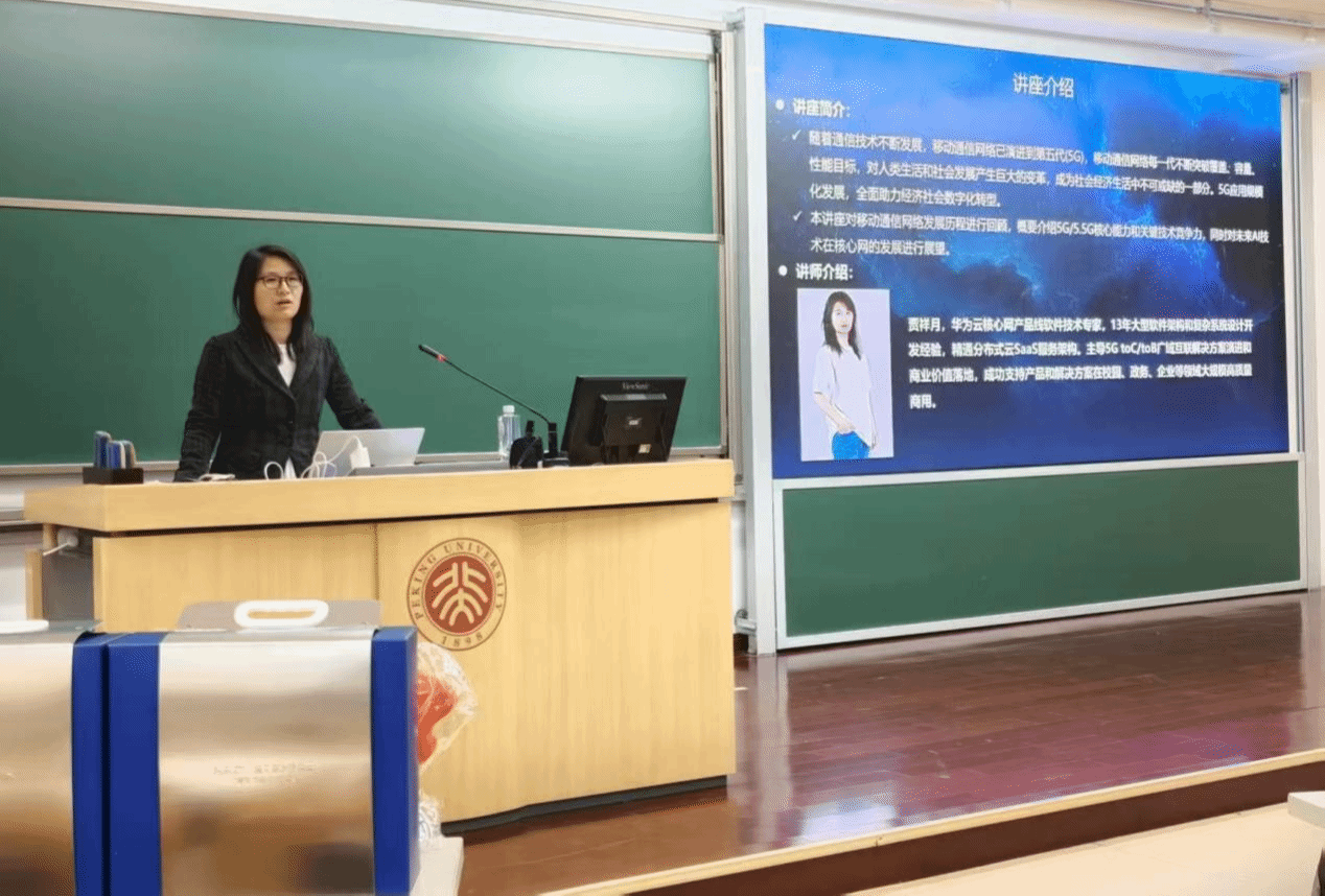 2025年12月5日晚,信息科学技术学院第四十七期“知存讲座”暨信息科学前沿与产业创新课程在理科教学楼107教室顺利举办。本次讲座主题为"5G/5G-A通信网络及未来AI技术展望",邀请华为云核心网产品线软件技术专家贾祥月老师担任主讲嘉宾。贾祥月拥有13年大型软件架构和复杂系统设计开发经验,精通分布式云SaaS服务架构,成功支持产品和解决方案在多个领域大规模高质量商用。本次讲座,她通过5G网络介绍、5G关键技术、5.5G关键技术、未来技术展望四个部分,回顾移动通信网络的发展历程,介绍5G和5.5G技术的核心竞争力,同时对未来AI技术在核心网领域的作用进行展望。讲座内容全面,易于理解,且包括丰富的互动环节,促进同学们深入了解移动通信网络的发展历程,也启发同学们结合所学知识思考5.5G相关通信技术的未来发展方向。讲座由电子学院舒浩文助理教授主持。