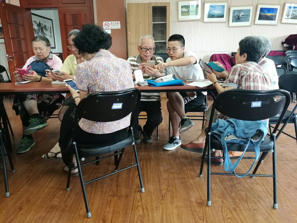 本次活动为信科软件所15级硕士生党支部、博士生党支部联合夕阳再晨社工中心共同举办,由景山街道提供场地和宣传支持。活动当天,共有20余名老人参加培训。在活动开始前,现场的老人和支部党员同学在街道工作人员的带领下,做了暖场活动,互相为对方按摩肩膀,这一活动迅速拉近了支部党员与老人们之间的距离。之后,一名党员同学与三名老人组成一组就坐,活动正式开始。
