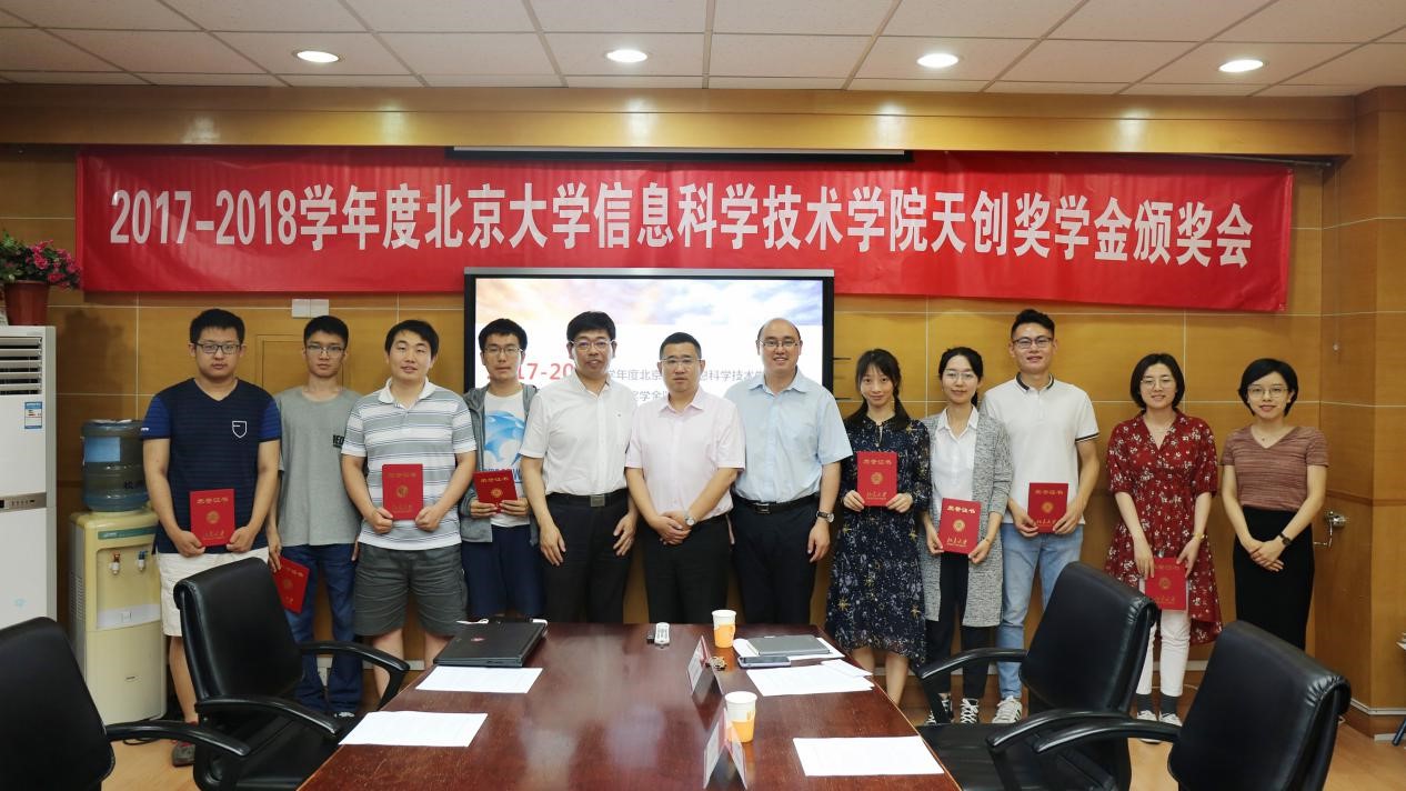 6月5日上午,北京大学信息科学技术学院天创奖学金颁奖大会在北京大学理科二号楼2135会议室召开,北京天创盛世数码科技有限公司董事长周洲、北京大学信息科学技术学院党委书记魏中鹏、北京大学教育基金会副秘书长胡俊出席了颁奖会,八名荣获我院2017-2018学年度天创奖学金的同学也参加了会议。会议由北京大学信息科学技术学院学生工作办公室专职辅导员贺凌主持。