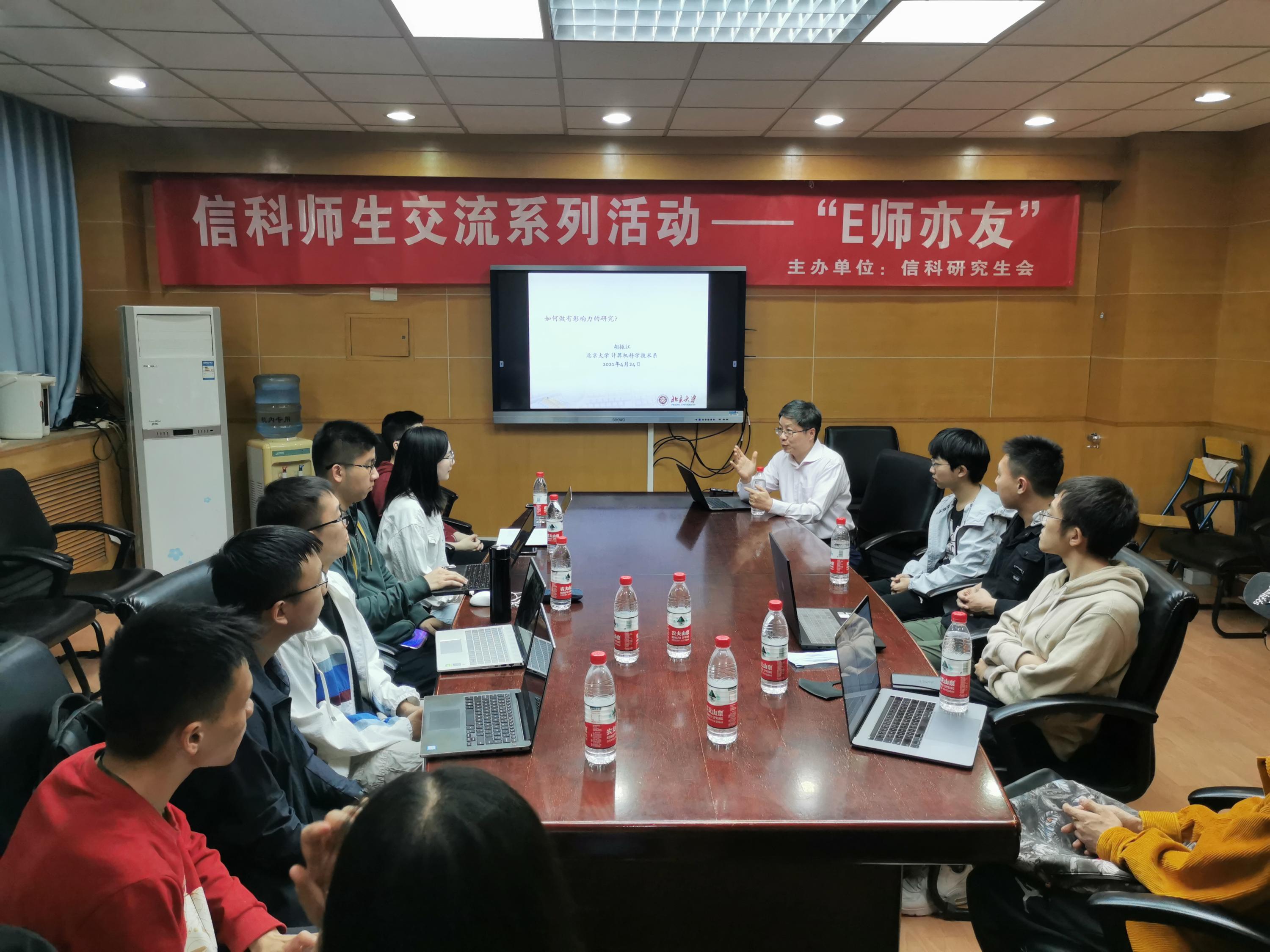 4月24日下午3:00,由信息科学技术学院研究生会主办的“E师亦友——如何做有影响力的研究”师生座谈会在理科二号楼2135教室成功举行。本次座谈会邀请到信息科学技术学院计算机系主任胡振江教授作为嘉宾,与来自学院不同专业和年级博士生、硕士生以及本科生分享科研和人生经验。同学们热情高涨,积极提问,胡振江老师为同学们答疑解惑,以亲身经历言传身教。