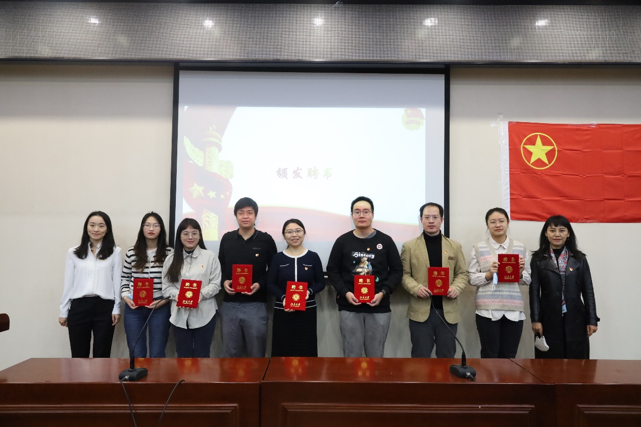 随后,艺术学院党委副书记王蓓、历史学系党委副书记吴雅文为团校导师和朋辈辅导员颁发聘书。