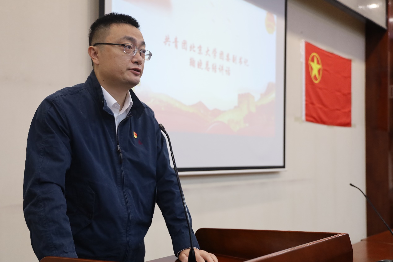 随后,信息科学技术学院党委副书记贾方健致辞。他指出,学校是教授知识的场所,希望大家能够认真学习,充分利用联合团校这一难得的打破院系壁垒的平台;希望同学们不仅跟本院系的同学沟通,还要充分发挥自己院系的优势特长、学科特色,发现各院系的异同从而取长补短。他还指出,本次青年团校是一个高水平的舞台,希望各位学员能够用好这个舞台,不止于打卡、走过场,更重要地是沉浸式地学习。最后,他引用二十大报告中对青年同志的寄语,期许同学们通过三院联合团校得到全方面的提升。