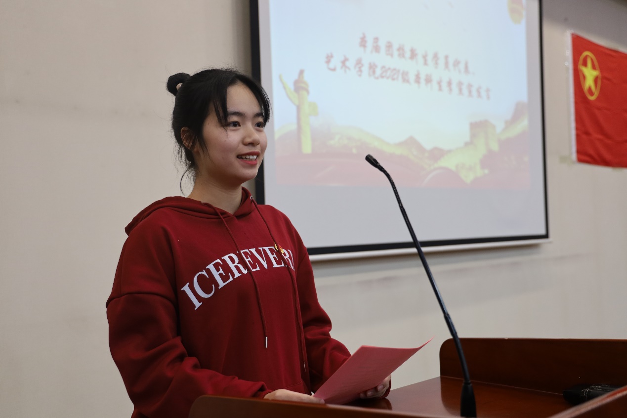 本届团校新生学员代表、艺术学院2021级本科生李宣宣发言
