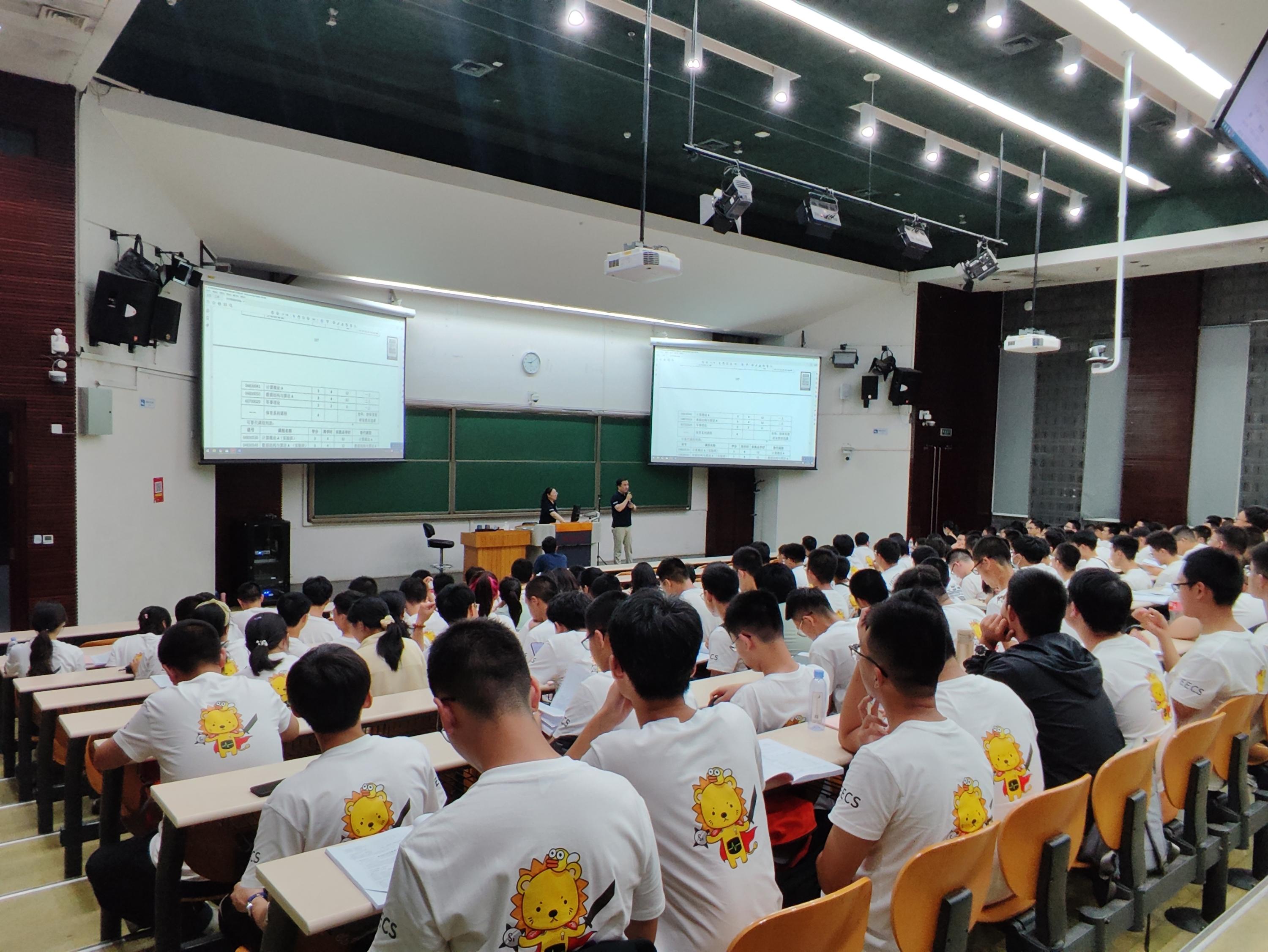 贾方健副书记介绍了学院学生工作的整体情况。首先,他指出信科学生数量多、师资力量大,故称之为大信科。然后他从学生党建工作、学校资助工作、学生心理健康工作、学生教育宣传工作、就业指导服务工作、团学工作等多个维度,全方位地介绍了具有信科特色的学生工作,全面周到的学生工作服务也将会陪伴大家持续生长。最后,贾老师鼓励全体新生在刻苦学习、潜心钻研的同时,也要积极参加学院的各类学生组织与活动,广泛涉猎,充实自己,全面发展。