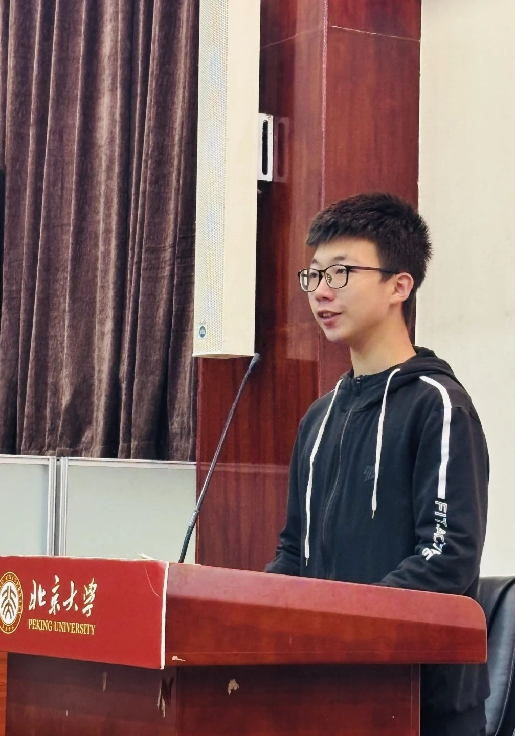 之后,信息科学技术学院团校秘书处副秘书长李嘉鹤发言。他结合下发的学员手册,向大家介绍了团校的主要职能和具体内容。此外,他还简要说明了本次团校采取的学分结业机制,以及优秀学员、优秀小组评选办法。
