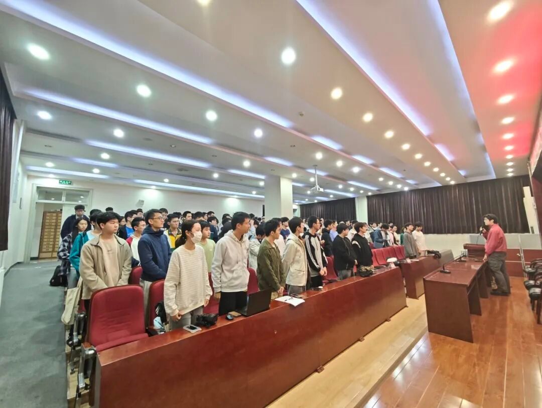 2025年10月16日晚,理科二号楼2129教室灯火通明,同学们陆续入场就座,满怀期待地迎接信息科学技术学院2025年“一二·九”师生歌会动员大会。秋意渐深,夜色微凉,却丝毫未能减弱信科学子心中的热忱与激动。