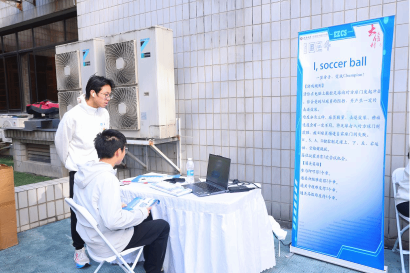 数十个摊位在理科一号楼中庭排开,有趣可爱的学院吉祥物“攻城狮”与校内外数百名参与者热情互动。人列计算机、栈和队列、“有脚就行”等小游戏现场人生鼎沸,四驱车竞速、“遇上学分吃定学分”、“I soccer ball”活动周围阵阵惊呼,你画我猜(AI版)、创世纪——攻城狮诞生、任务资源管理器等更是让同学们充分发挥聪明才智。丰富有趣的活动让参与者在动手实践中感受新工科特色,在解谜挑战中了解信息科学的学科魅力,在互动交流中思考未来创新。