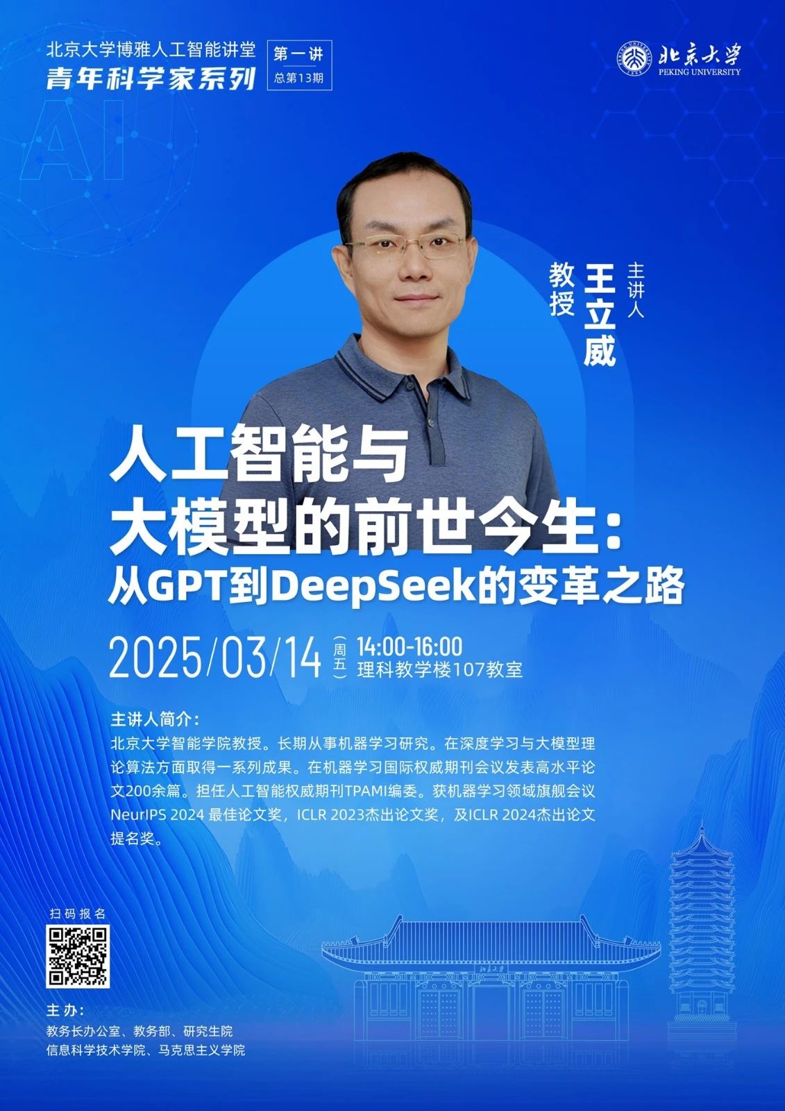 为推动数智技术赋能教学方式与科研范式创新,进一步提升师生数智素养,培养具有数智时代胜任力与塑造力的拔尖创新人才,2024年春季学期开始,北京大学设立“博雅人工智能讲堂”,面向全校开放。系列讲座主要围绕人工智能理论研究、应用实践及学科交叉融合趋势、人才培养模式等方面,邀请专家学者分享人工智能领域的学术思想和研究成果。欢迎全校师生参与交流!